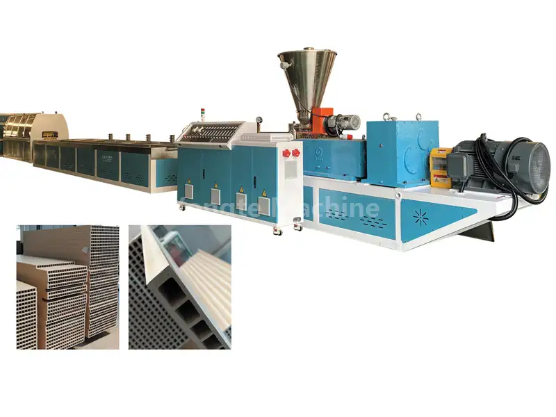 Yongte는 PVC 수지와 목재 가루를 주요 재료로 하는 압출 및 성형 방법론을 활용하여 목재-플라스틱 복합 중공 보드 제조를 위해 세심하게 설계된 중공 WPC 보드 생산 라인의 중국 전문 제조업체입니다. 이 종합적인 생산 라인은 자동 공급기, 고효율을 특징으로 하는 원추형 이축 압출기, 지정된 폭과 두께의 치수를 가진 중공 WPC 보드용으로 설계된 금형, 수냉식 테이블과 결합된 진공 교정 장치, 안정적인 캐터필라 풀오프 기계, 자동 길이 절단 장치, 제품 적재 메커니즘 및 우수한 전기 제어 시스템으로 구성됩니다. 당사의 중공 WPC 보드 생산 라인은 효율적인 혼합, 정밀 압출 및 미세 성형 공정을 포함한 최첨단 기술을 통합하여 고도의 자동화, 사용자 친화적인 작동, 전력 소비 감소 및 유지 관리 절차 단순화를 보장합니다.