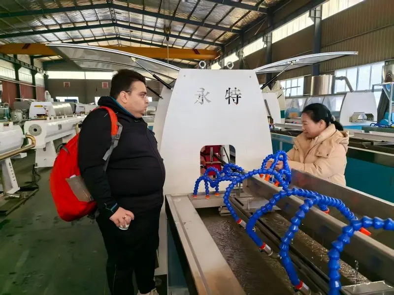 Recently, a customer from India visited our factory to inspect the on-site operation of our 고무 관개 파이프 기계. this machine is specially designed for making anti-clogging irrigation pipe from rubber wastage.