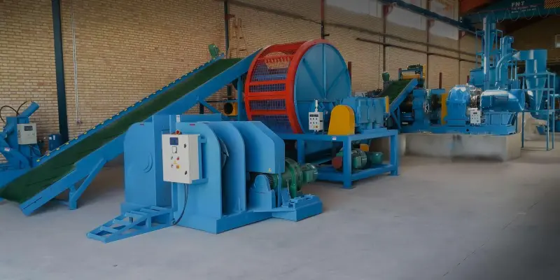 타이어 파쇄기: 고무 타이어 조각을 고무 블록으로 파쇄하는 데 사용됩니다.